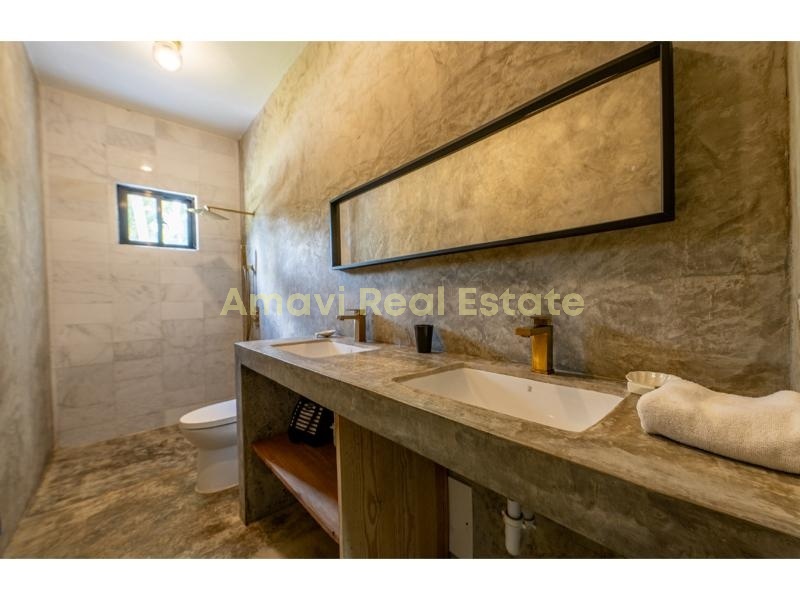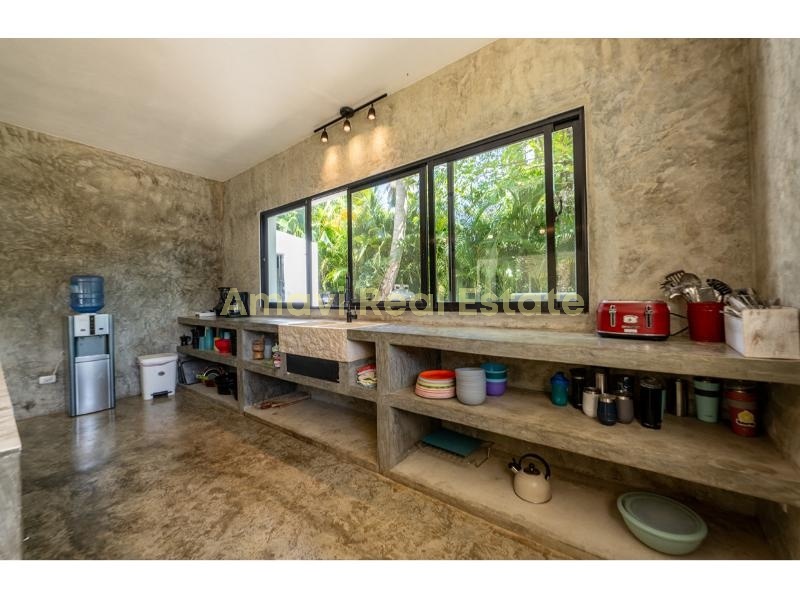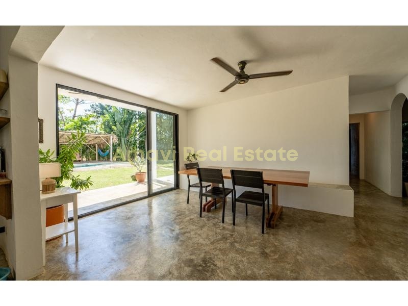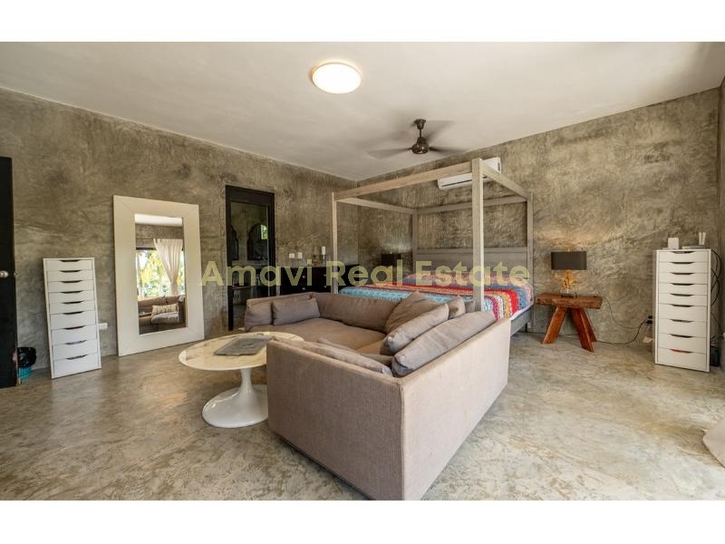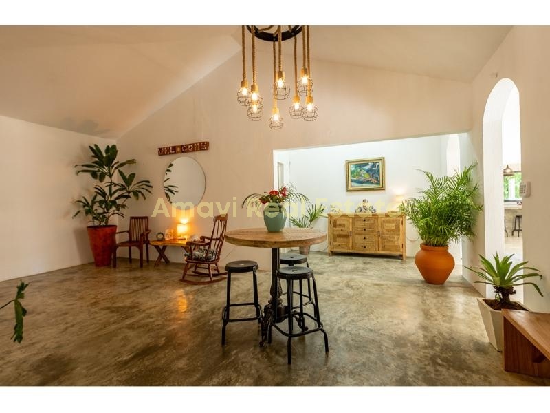 - Nestled on a 1200m² plot, the 300m² villa offers a unique and intriguing layout with endless possibilities. Transform it into a charming boutique hotel or an Airbnb rental, or take advantage of the additional land to construct bungalows and expand your accommodation options.